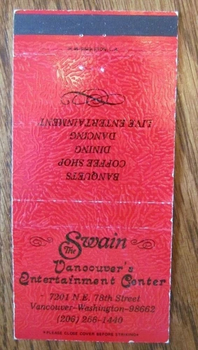 FILIGREE MATCHBOOK MATCHCOVER: SWAIN NITECLUB (VANCOUVER, WASHINGTON) -E10