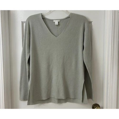 Soft Ribbed V Neck Sz M Sweater Gray Green Minimalist Lagom Pullover H M Basics