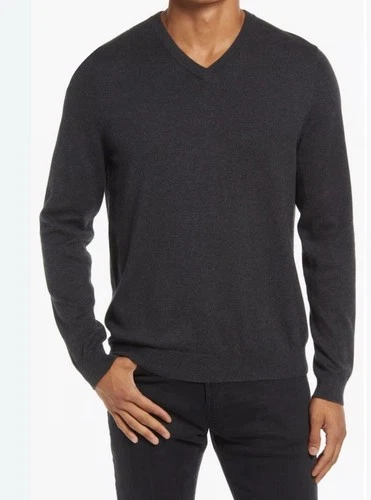 Nordstrom Men's Cotton/Cashmere Knit V-Neck Pullover Sweater Navy Blue • XL