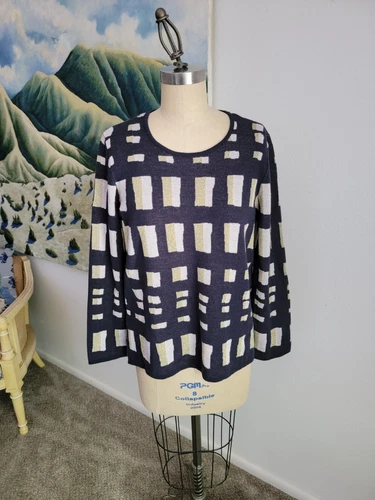 Ann Taylor Merino Wool Sweater Sz Large Geometric Metallic Soft Career Modern