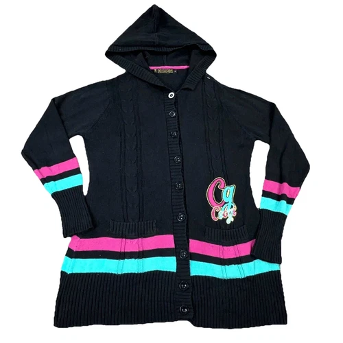 Vintage Coogi Cardigan Sweater Women 1X Black Pink Striped Hoodie Knit Y2K 2000s