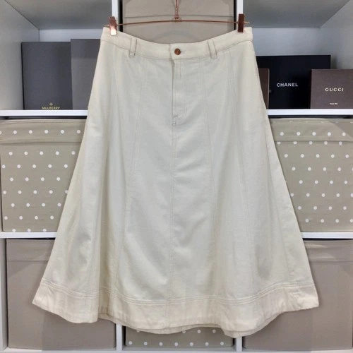Boden Joy Panelled Denim Midi Skirt Size 16 Cream Pockets Soft A Line Swing