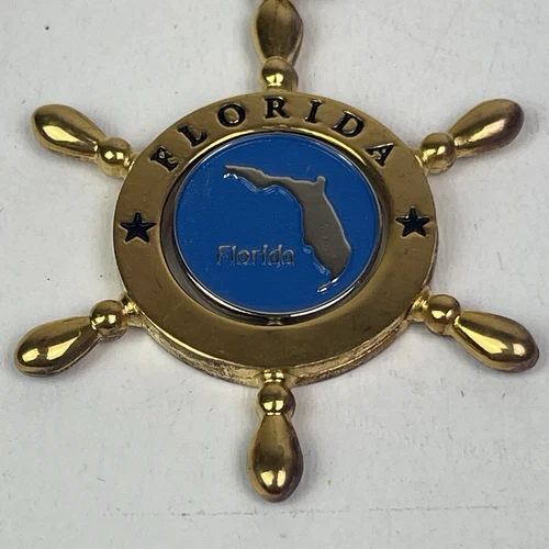 Vintage Florida State Souvenir Ship Wheel Swivel Keychain Spinner Collector