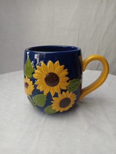 Autumn Sunflower Coffee Tea Mug Large 18 oz Gold Fall Hand Painted