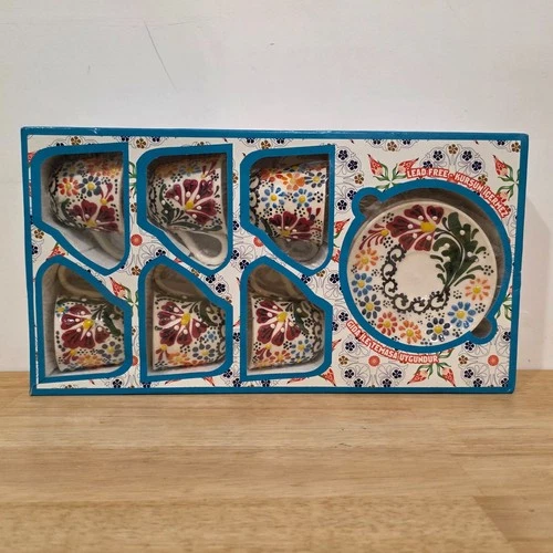 Turkish Coffee Cup Set Serves 6 Hand Painted Ceramic 12pc Floral Turkey Made
