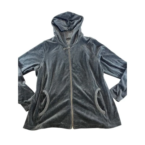 Eddie Bauer Womens 2X Gray Velour Full Zip Hoodie Jacket Cotton Blend