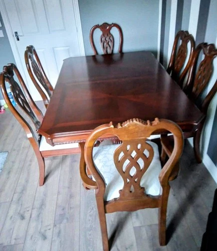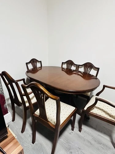 Vintage Solid Wood Oval Dining Table & 6 Chairs Mahogany Style Classic Set