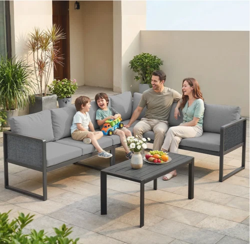 Metal Garden Furniture Set Large Corner L Cushion Sofa Chairs Garden Patio Table