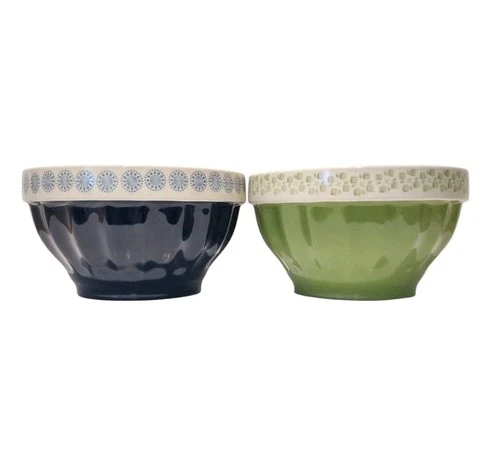 Tabletops Gallery 9" Aaron Mixing Serving Bowl Blue Retro Green 2 Bowls 5" Tall