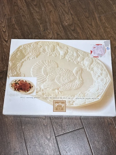 TableTops Gallery XL Serving Platter White Embossed 19 1/2” Turkey Thanksgiving