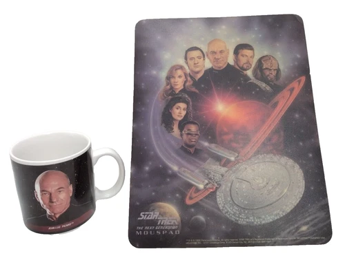 Vintage 1993 Star Trek The Next Generation MOUSE PAD + COFFEE MUG Picard Geordi