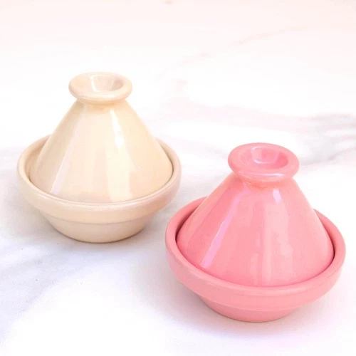 Ceramic Tagines Set Handmade Terracotta Mini Spice Jars Beige Pink