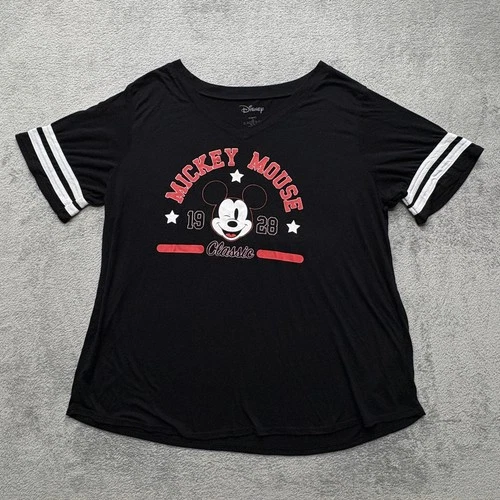 Disney Mickey Mouse Shirt Womens 2XL Black Classic 1928 Graphic Tee Short Sleeve