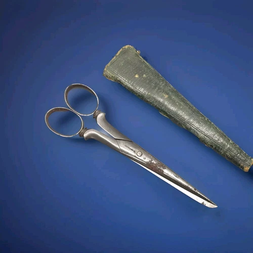 Victorian Cut Steel Scissors With Sheath by Simpson