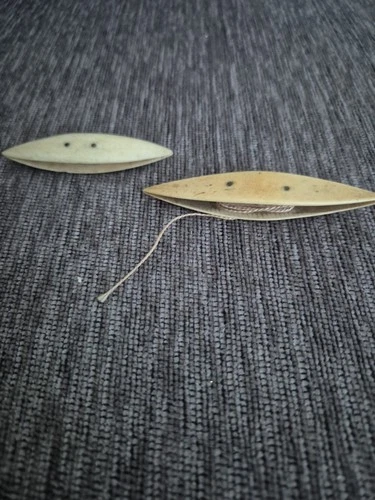 2 x Antique Tatting Shuttles Sewing Tools - Bovine Bone