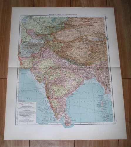 1914 ANTIQUE MAP OF BRITISH INDIA PUNJAB NEPAL HIMALAYA CHINA TIBET CENTRAL ASIA