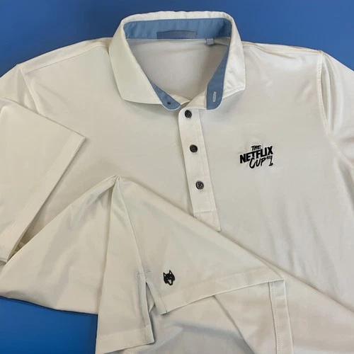 Greyson Tala Polo Shirt Arctic White Golf Stretch Performance Netflix Cup Men XL