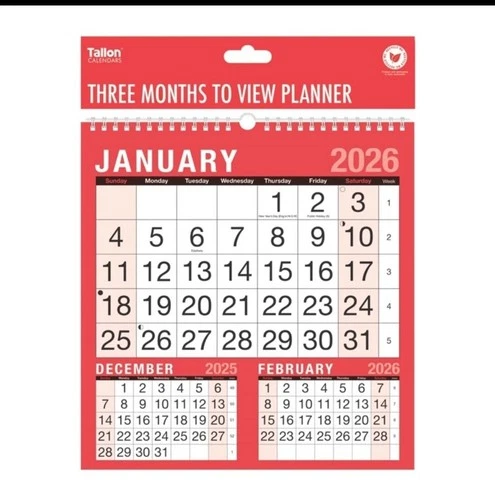 Three Months To View Planner 2026 Wall Calendar For Office School Wiro Bound