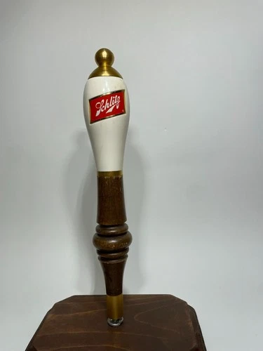 Vintage Schlitz Beer Tap Handle White Plastic and Wood Gold Ends 11"