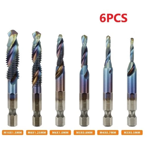 6PCS Plated Hex Shank Drill Bits Set HSS Screw Thread Metric Tap Wrench