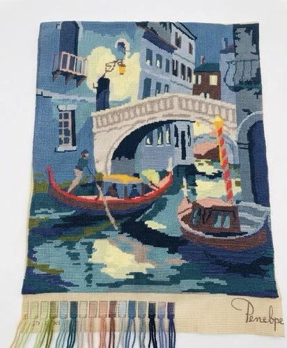 Stunning Vintage Needlepoint Tapestry Showing A Scene In Venice. Unframed.