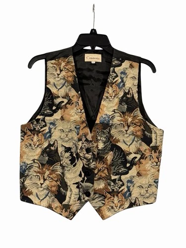 Vintage Conterio Cat Tapestry Embroidered Button Front Sleeveless Vest Size L