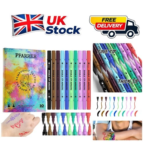 Washable Temporary Tattoo Marker Pens for Skin - Creative Body Art Kit of 10