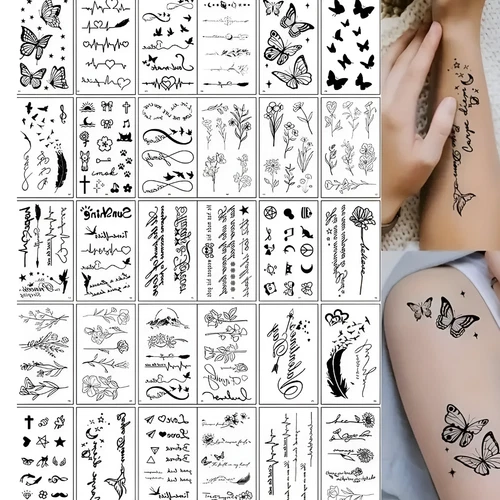 30 Sheets Fine Line Temporary Tattoos Realistic Floral Body Art for Festivals