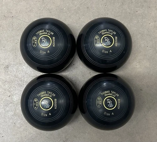 Thomas Taylor Ace Black Lawn Bowls Set Size 4 Heavy Weight WB11 Dolphin Emblem
