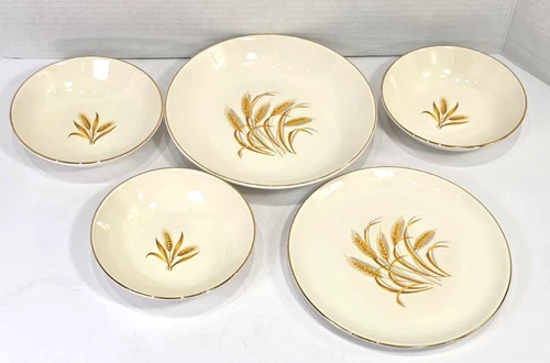 MCM Taylor Smith & Taylor Golden Wheat Salad Plate Salad Bowl Sauce Bowls 5 Pcs