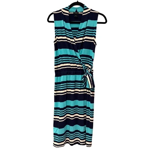 Ann Taylor dress Small stripe faux wrap Navy aqua short