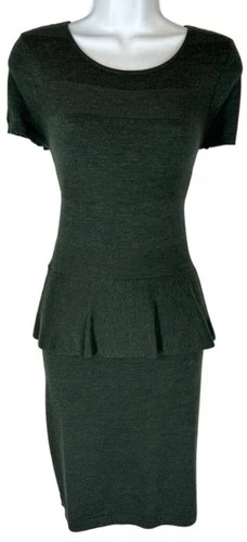 Ann Taylor Loft Sweater Dress Size XS Dark Olive Green Peplum Accent Wool Blend
