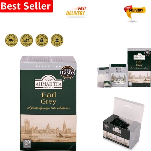 Hand Plucked Earl Grey Tea - 20 High Caffeine Teabags for Refreshing Moments