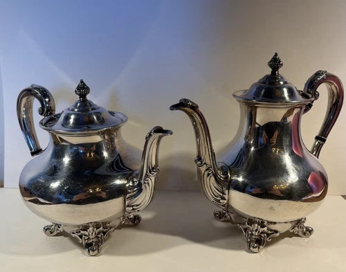 Reed & Barton Regent 5600 Silverplate Tea Coffee Pot Set Footed Vintage