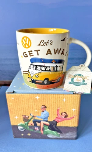 VW Mug Camper Van Coffee Tea Mug Nostalgic Art Retro Let's Get Away NEW