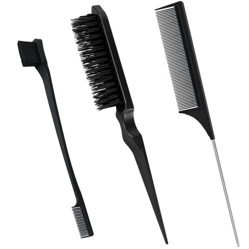 3-Piece Hair Slick-Back Brush Set - Teasing & Edges Brush for Women's Salon Sty