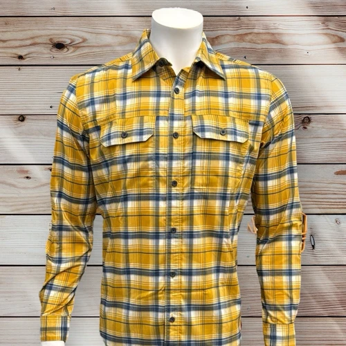 Swiss Tech Yellow Blue White Plaid Long Sleeve Button Front Hiking Shirt Size S