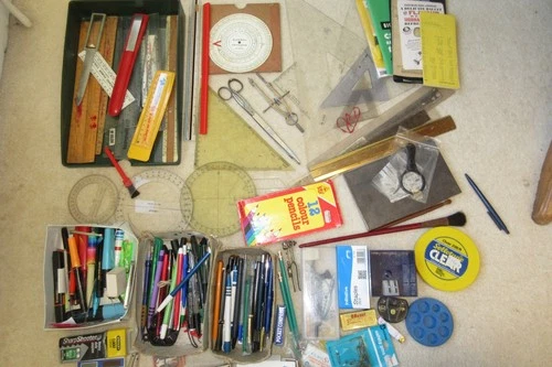 Pens pencils technical Rulers stationery Pins Job Lot Vintage 1980s blackwell