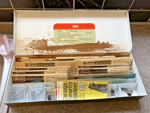 Vintage Uno Pen Stencil Set in Original Metal Box
