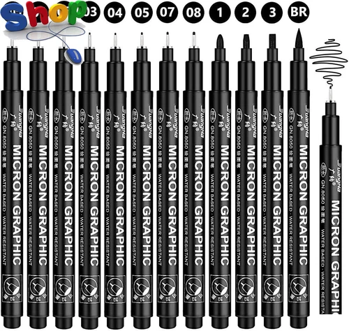 Black Fineliner Pens Set 12 Pack Fineliners Technical Drawing Pens, Micro Liner