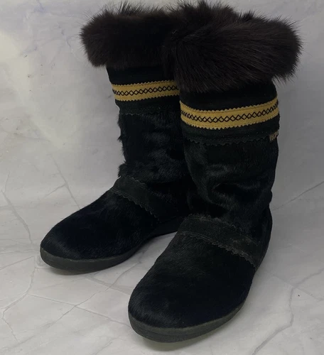 Tecnica Black Goat Fur Pony Hair Apres Ski Winter Boots Womens Sz 39 US 8 M