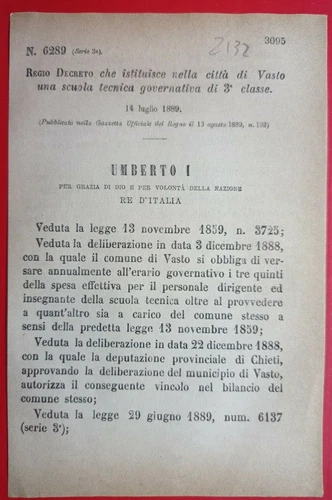 VASTO, ROYAL DECREE ESTABLISHES A GOVERNMENT TECHNICAL SCHOOL IN THE CITY-2132