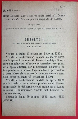 LOANO, ROYAL DECREE ESTABLISHES A GOVERNMENT TECHNICAL SCHOOL IN THE CITY-2137