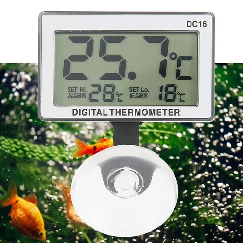 DC16 Suction Cup Aquarium Thermometer Submersible Fish Tanks Mini Alarm Tempera-