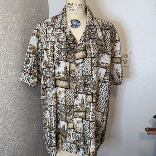 Ten2One Shirt Mens Large XL Hawaiian Island Palm Tree Short Sleeve Button Up