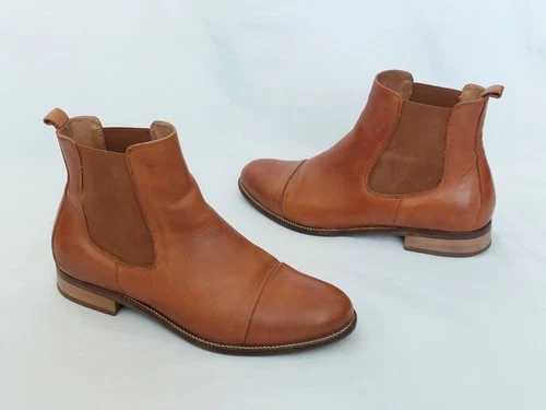 TEN POINTS MID BROWN LEATHER CHELSEA STYLE ANKLE BOOTS EU38 UK5