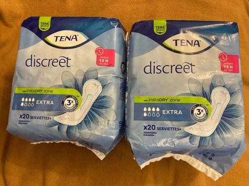 TENA DISCREET EXTRA 2 PACKS OF 20 INCONTINENCE SERVIETTES