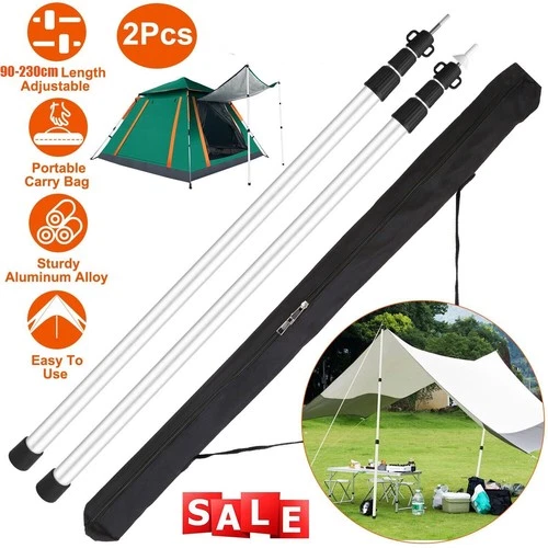 2PCS Tarp Tent Poles Adjustable Telescopic Awning Canopy Support Rod 90cm-230cm