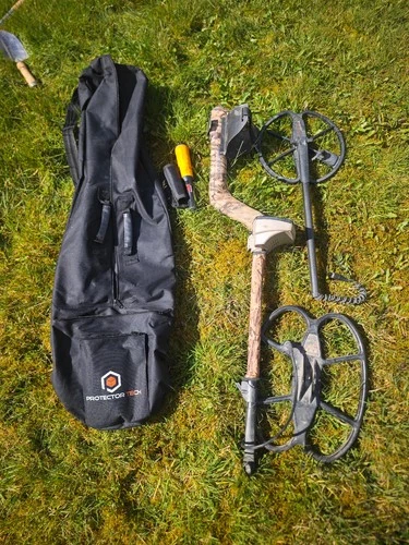 Minelab Safari metal detector, cover, minelab pointer, extra large coil and bag
