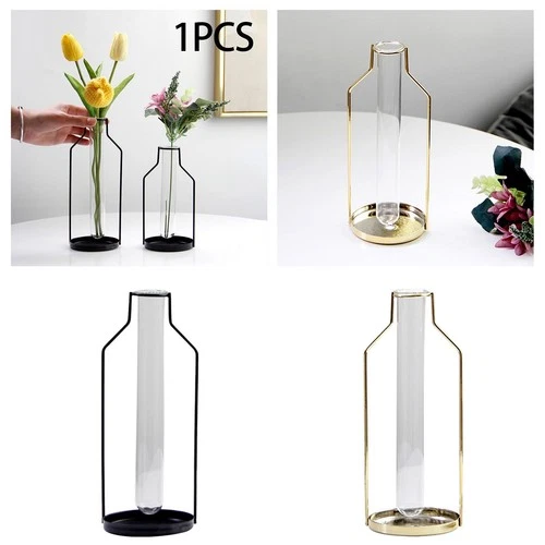 Iron Lines Flower Vase Decorative Glass Vase Ornament Test Tube Vase for Bedroom